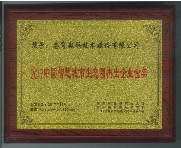 蒼穹數(shù)碼技術(shù)股份有限公司榮獲“2017年中國智慧城市生態(tài)圈杰出企業(yè)金獎”