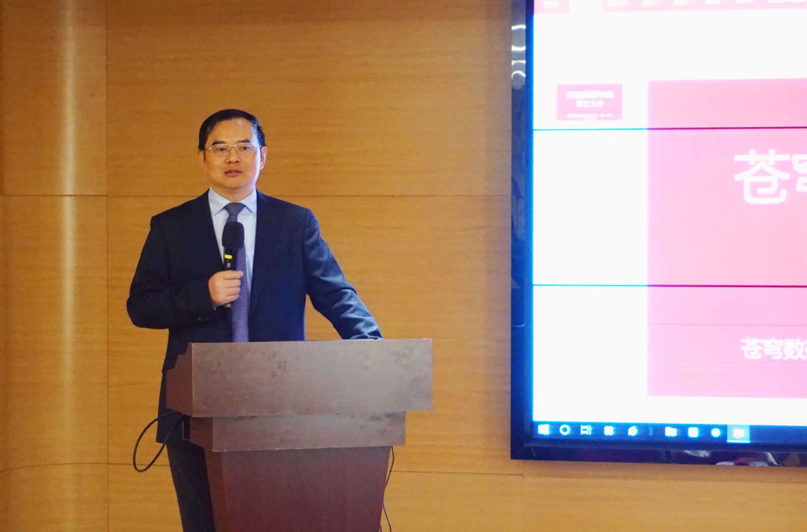 在成立大會上,蒼穹數(shù)碼董事長徐文中致辭。