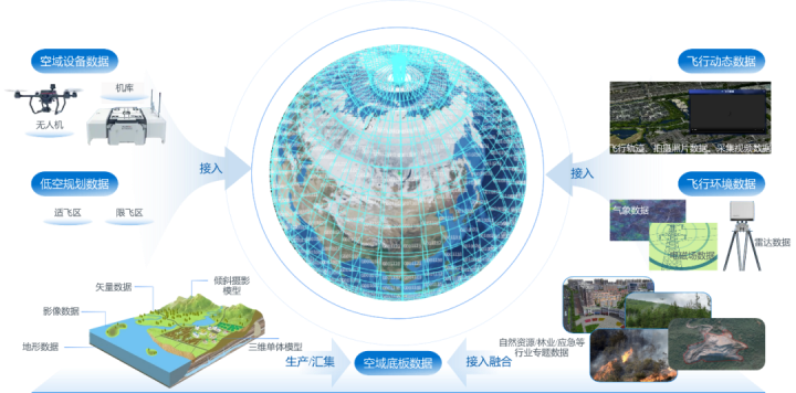 面向低空數據中心建設需求,蒼穹數碼低空數據生產管理系統支持空域底板數據、空域設備數據、飛行環境數據、飛行動態數據等多源數據生產與接入,實現異構數據二三維一體化融合管理,并進一步支持空域數字化網格構建支撐精細化低空管理應用。