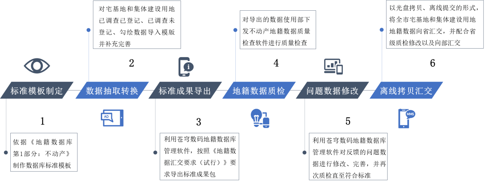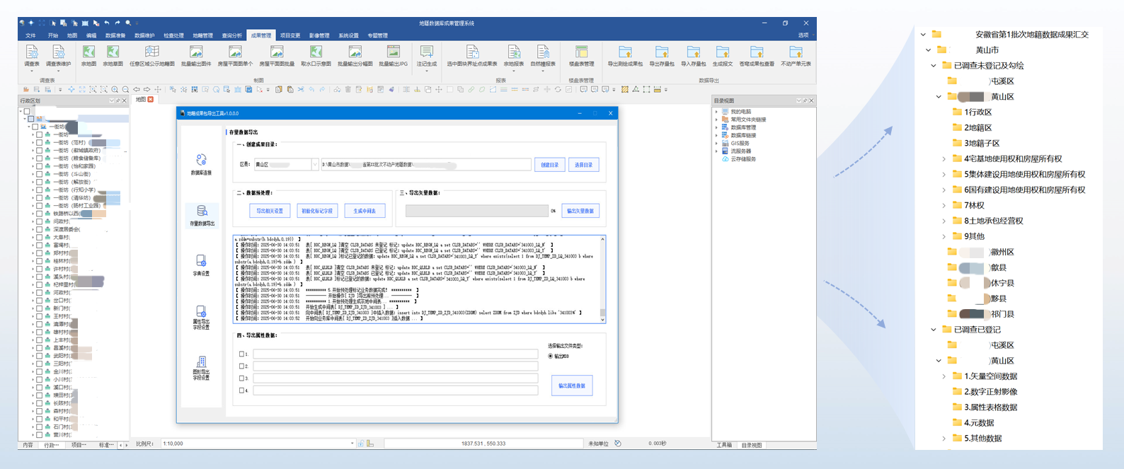蒼穹數碼充分發揮在數據治理和質檢匯交領域的深厚累積,針對黃山地籍數據庫“物理分散、邏輯集中”的管理現狀,快速制定了“標準模板制定—數據抽取轉換—標準成果導出—地籍數據質檢—問題數據修改—離線拷貝匯交”的整體技術路線。在以國家下發的“不動產地籍數據質量檢查軟件”為質量管控標準的基礎上,依托全國產自主研發的地籍數據庫管理軟件,對數據修改完善后一鍵式快捷導出標準成果包,確保每一項數據“查得準、改得對、匯得全”。