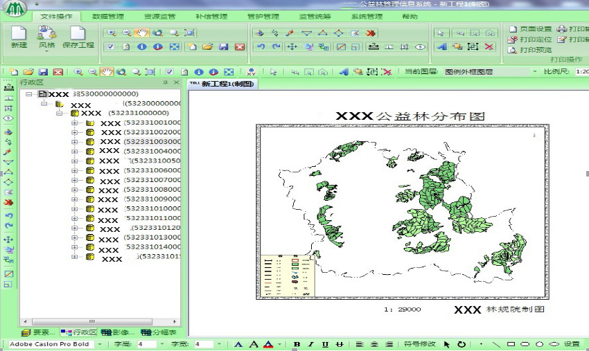 按照市、縣等行政區劃制作公益林分布圖,生成公益林統計表。