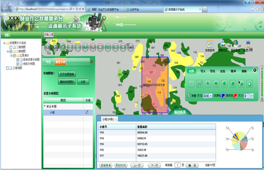 信息服務(wù)子系統(tǒng)基于平臺(tái)中所有數(shù)據(jù)和功能,以接口的形式對(duì)外提供各類符合OGC標(biāo)準(zhǔn)的服務(wù),為林業(yè)各部門搭建業(yè)務(wù)系統(tǒng)提供支撐。